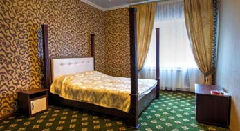 Двухкомнатный номер, комнаты смежные с дверью. В спальне двуспальная кровать и две прикроватные тумбочки. В гостиной — диван (раскладывается), шкаф, тумбочка под телевизор, LCD телевизор (20 цифровых телеканалов); на полу ковролин.