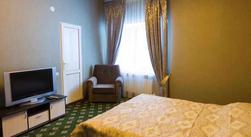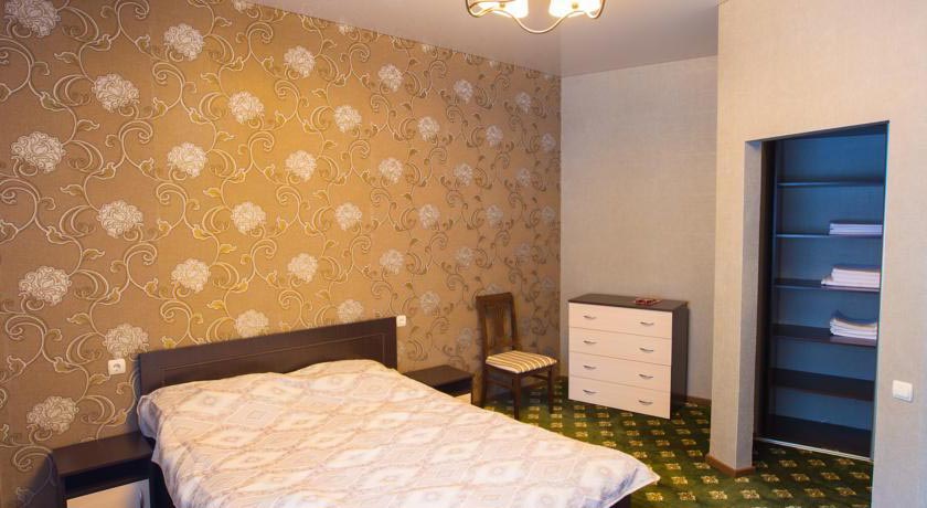 Однокомнатный номер с двуспальной кроватью, двумя прикроватными тумбочками, комодом, встроенным шкафом-купе, тумбочкой под телевизор, LCD телевизором (20 цифровых телеканалов); на полу ковролин.